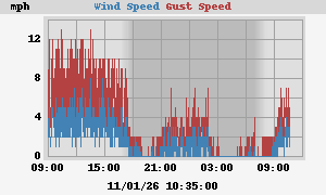 max: 3 mph at 01:58:00 (Sunday) max gust: 7 mph at 00:32:55 (Sunday)